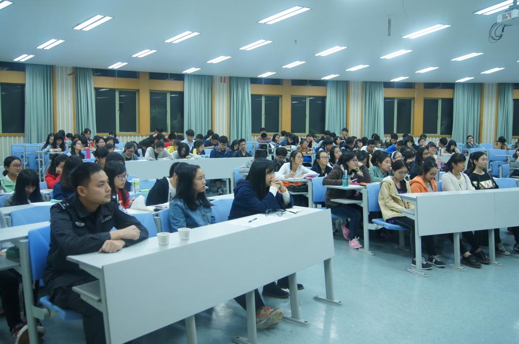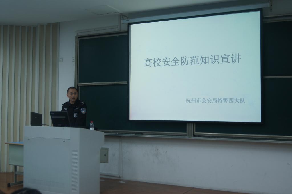 于11月8日,特邀请杭州市公安局特警支队四大队的高粱警官对2015级同学及各年级寝室长进行安全教育。