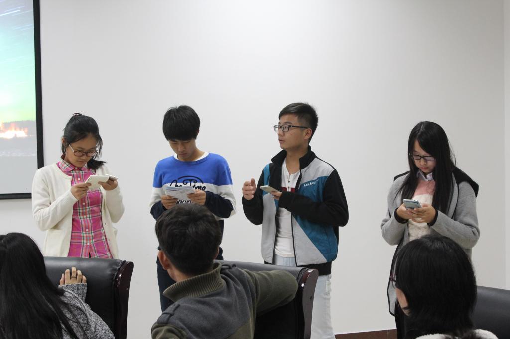2015年11月12日下午,6号楼304室,经贸学院本科生“微沙龙”活动第一次启动。本次活动由15国贸英华班策划主办,活动主题为“英语角·Festival Culture”,大家围绕中西方节日文化展开了深入的交流与互动。