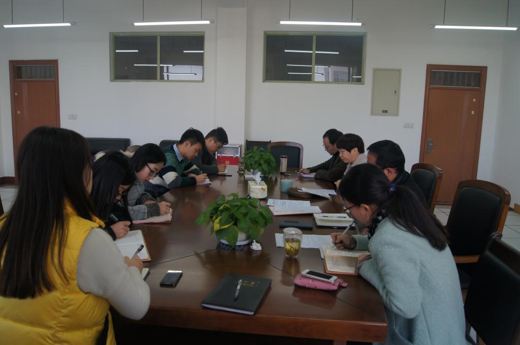 在302会议室召开“三严三实”专题教育第三专题学习研讨会。学院领导班子成员及党支部书记参加学习,院党总支书记范建锋主持会议,院长胡亦琴做专题发言。