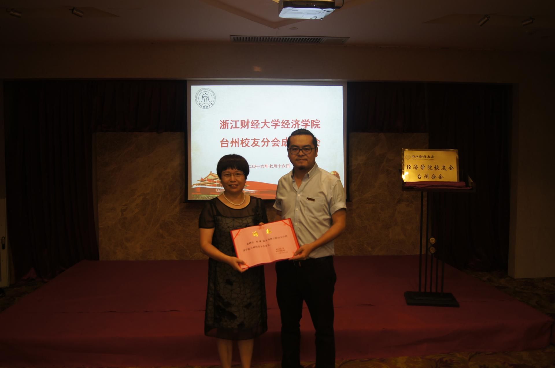 台州校友分会揭牌并授旗。院长胡亦琴为a漫