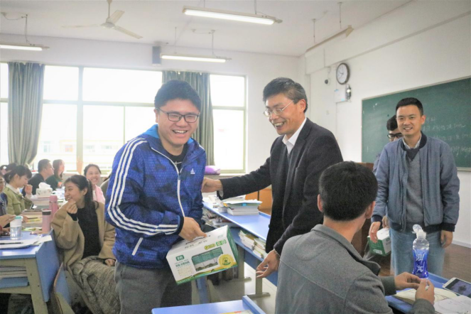 看望中,沈水法书记充分肯定同学们选择了考研。同学们的考研过程是大家巩固和检验学习成果、挑战自我的一段难忘经历,也是人生的一笔宝贵财富。希望同学们在备考迎战的最后冲刺阶段,坚定信心不放弃,充分相信自己的能力和实力,调整好心态,并预祝同学们在考研中取得优异成绩,实现自己的梦想。学院为考研学生送上了慰问品。