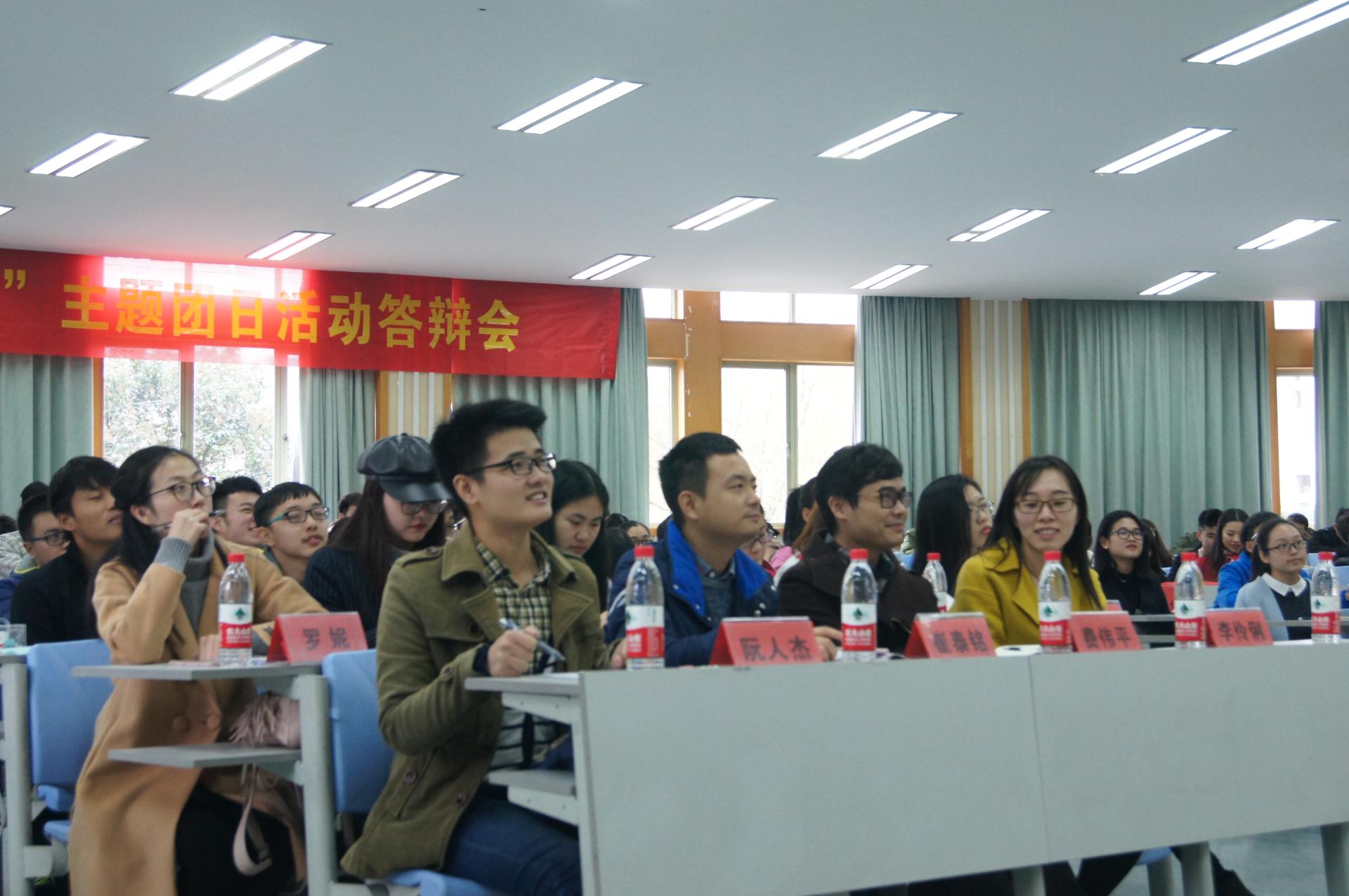 团日活动答辩会在6号楼111教室顺利举行。学生办公室主任崔泰铭,团委书记费伟平,辅导员谭立娟、李伶俐,a漫