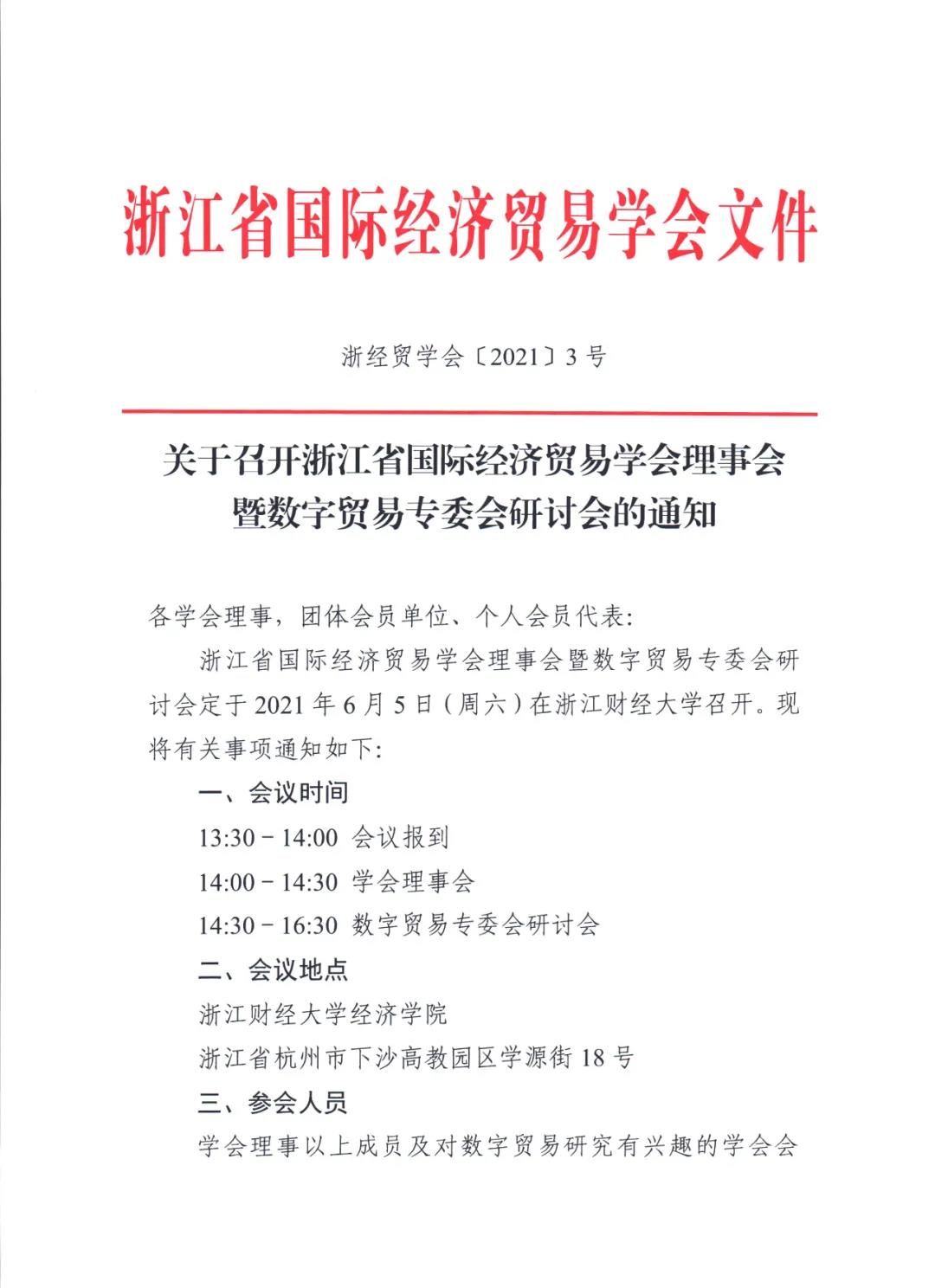 会议通知—浙江省国际经济贸易学会理事会暨数字贸易专委会研讨会