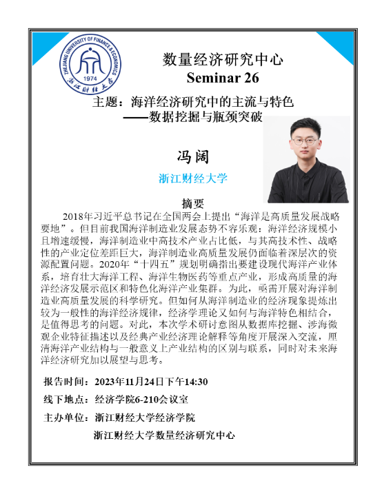 但如何从海洋制造业的经济现象提炼出较为一般性的海洋经济规律,经济学理论又如何与海洋特色相结合,是值得思考的问题。对此,本次学术研讨意图从数据库挖掘、涉海微观企业特征描述以及经典产业经济理论解释等角度开展深入交流,厘清海洋产业结构与一般意义上产业结构的区别与联系,同时对未来海洋经济研究加以展望与思考。