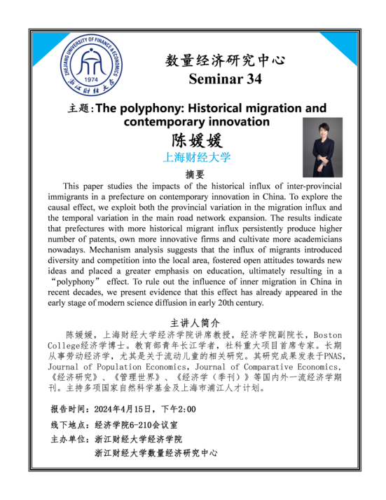 This paper studies the impacts of the historical influx of inter-provincial immigrants in a prefecture on contemporary innovation in China. To explore the causal effect, we exploit both the provincial variation in the migration influx and the temporal variation in the main road network expansion. The results indicate that prefectures with more historical migrant influx persistently produce higher number of patents, own more innovative firms and cultivate more academicians nowadays. Mechanism analysis suggests that the influx of migrants introduced diversity and competition into the local area, fostered open attitudes towards new ideas and placed a greater emphasis on education, ultimately resulting in a “polyphony” effect. To rule out the influence of inner migration in China in recent decades, we present evidence that this effect has already appeared in the early stage of modern science diffusion in early 20th century.