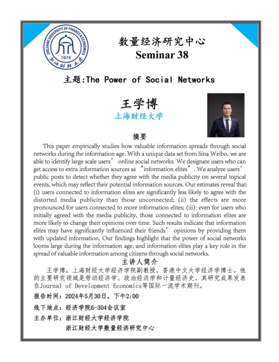 副教授,香港中文大学经济学博士。他的主要研究领域是劳动经济学、政治经济学和计量经济史。其研究成果发表在Journal of Development Economics等国际一流学术期刊。