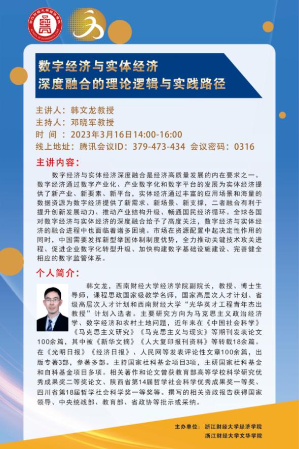 讲座信息——数字经济与实体经济深度融合的理论逻辑与实践路径