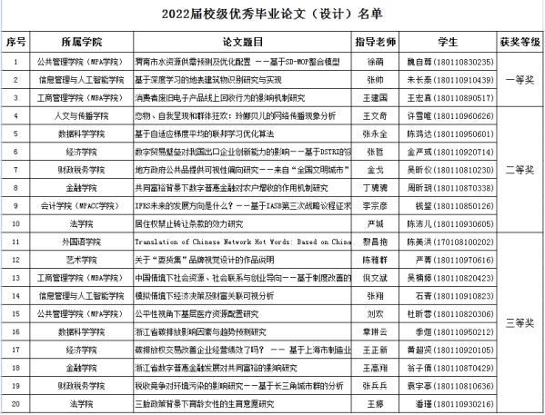 根据《a漫 本科生优秀毕业论文(设计)奖、毕业论文(设计)优秀指导教师评选办法》文件精神,经学院人才培养委员会评审并推荐、学校组织专家组评审,魏自尊等同学的20篇毕业论文(设计)被评为2022届校级优秀毕业论文(设计),徐萌等20名指导教师被评为毕业论文(设计)优秀指导教师,现予以公示。对评选结果若有异议,请书面或电话向教务处反映。公示日期:2022年7月4日-7月6日,联系电话87557073。