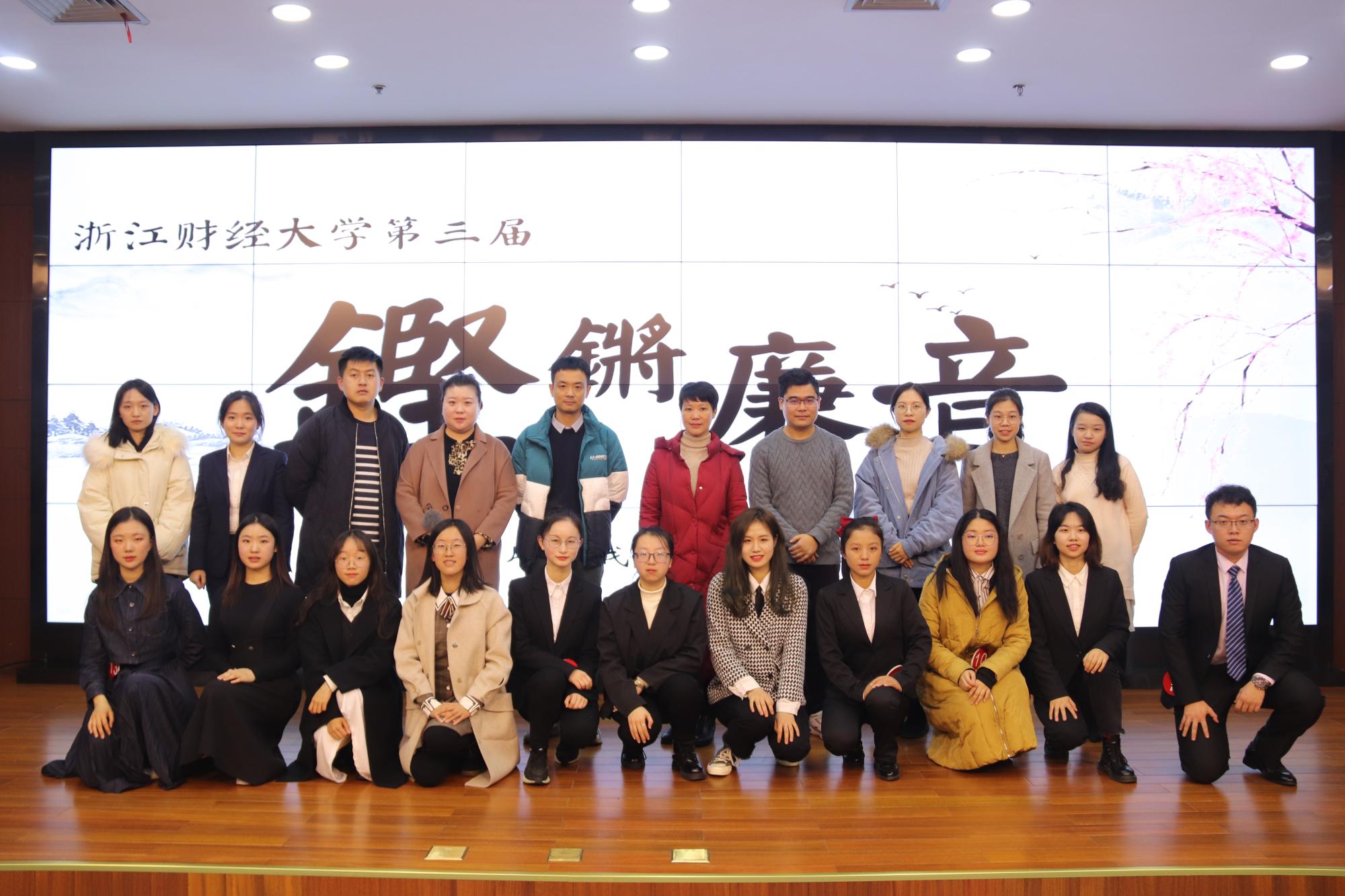 第三届铿锵廉音主题演讲比赛。校党委委员、宣传部部长楼胆群,校党委组织部费伟平,校党委宣传部俞榕,校纪检监察室林建梅,校党委学生工作部黄迪,校团委副书记徐艳妍,校党委研究生工作部施淑珍,以及a漫