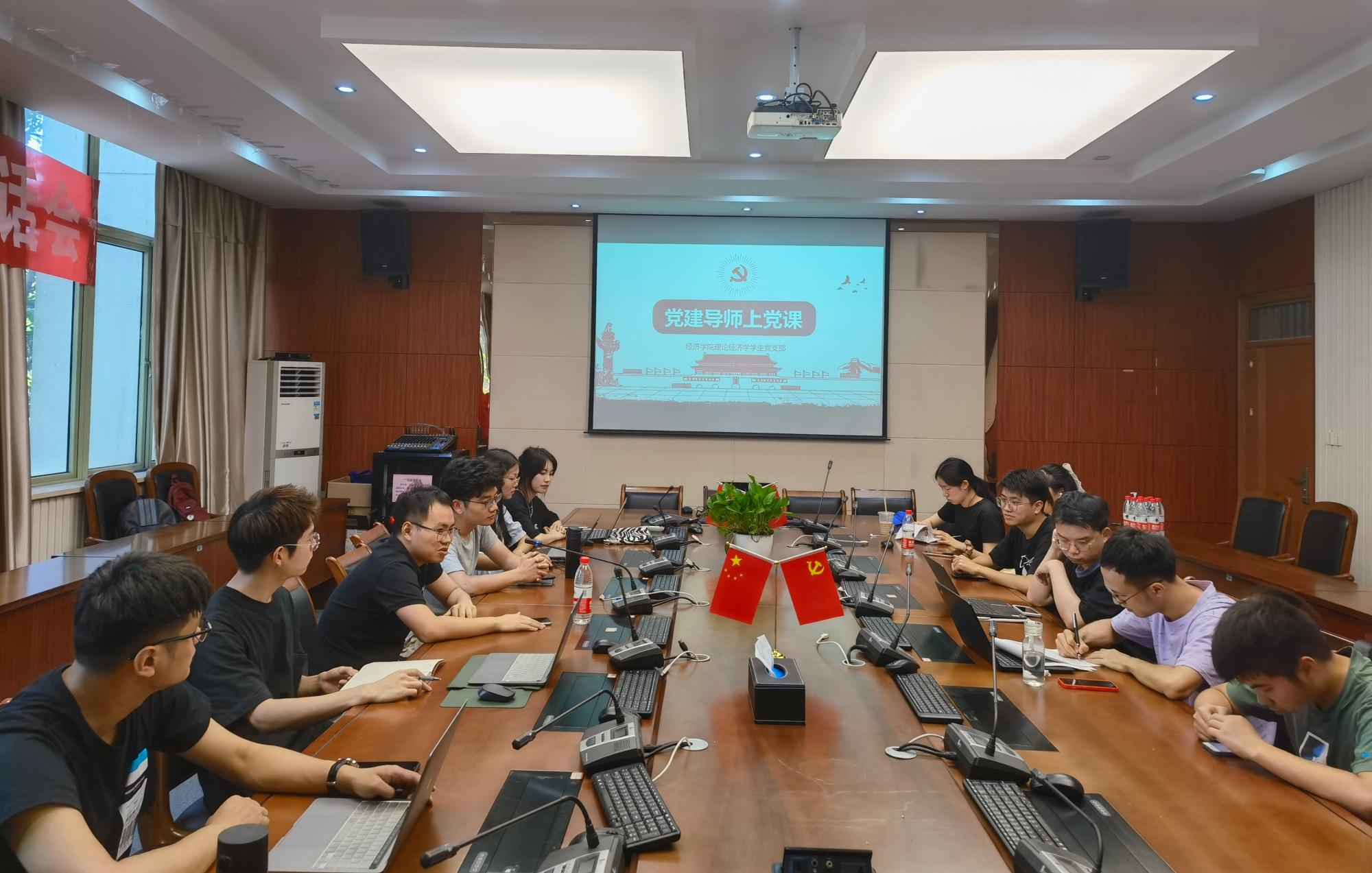 副院长罗俊为理论经济学学生党支部讲授“坚定理想信念,扎实党史学习”专题党课。会议由党支部书记李杭主持,全体党员及入党积极分子共18人参加。