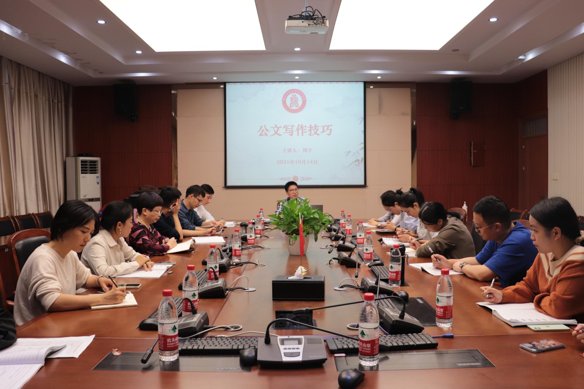 教职工作“公文写作技巧”专题讲座。部分学院领导、全体教辅人员参加,讲座由党委书记胡亦琴主持。