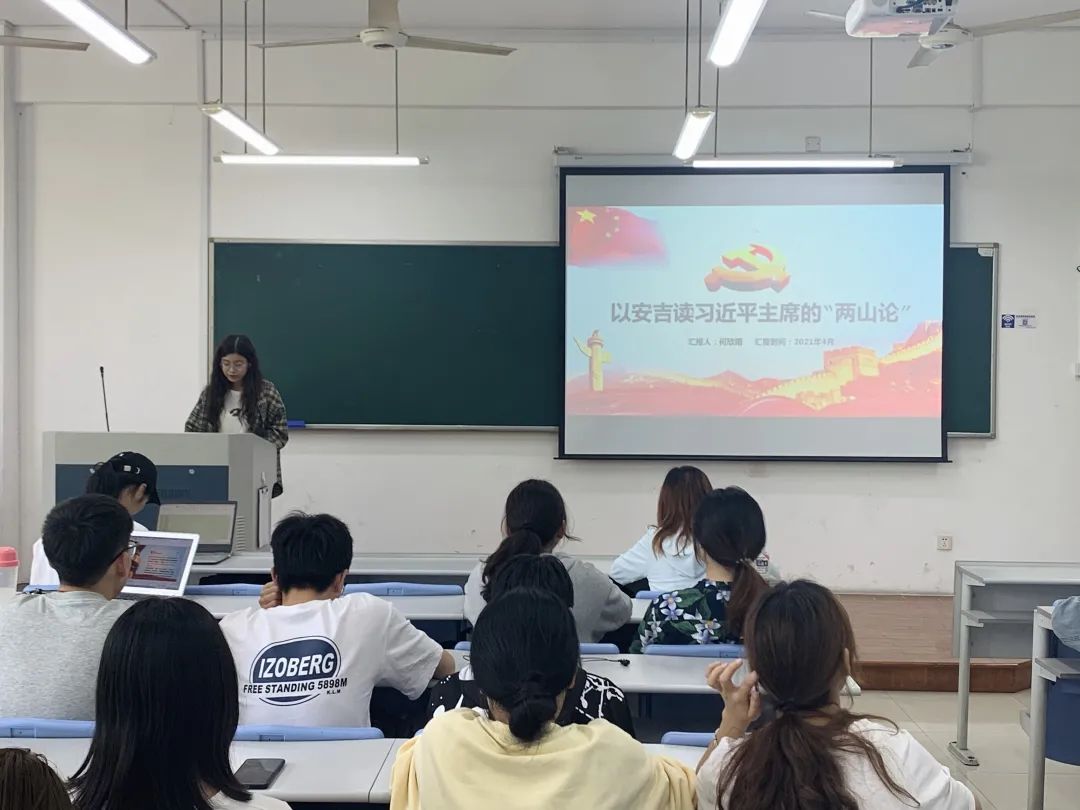 随后,支部成员结合实践,就感悟最深的采访实录内容进行了讨论。何欣雨围绕湖州安吉县重点关闭污染企业,大力发展生态经济、旅游经济的举措,分享了习近平总书记关于“两山论”的重要论述。王静怡讲述了习近平总书记在浙江工作期间多次前往文化遗址进行考察的事迹。在习近平总书记的关注与领导下,浙江加快从文化大省向文化强省迈进。