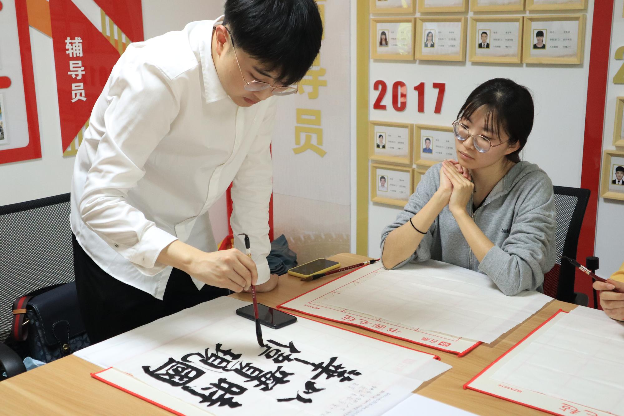 本科生第二党支部与会计学院研究生第二党支部在园区辅导员工作站举办“笔承青年志,翰墨书风采”主题党日活动。