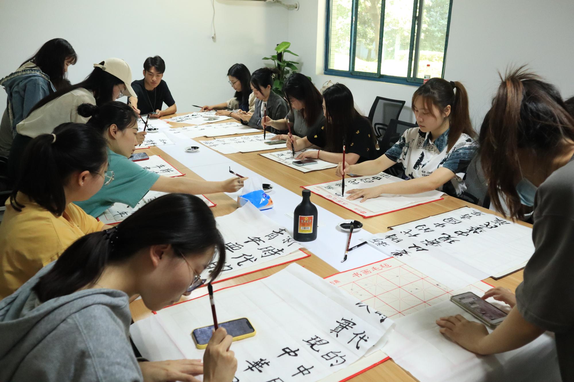 来自于两个支部共10余名党员共同参加了此次活动。活动中,会计学院研究生第二党支部书记曹煜老师就书法常识、书法技法以及书法作品的品读等方面进行了讲解示范,党员们挥毫泼墨,用流利劲爽的草书、行书,沉郁厚实的篆书、隶书,书写习近平总书记对青年的寄语。习近平总书记对青年一代的殷切嘱托,字字入心,句句箴言。大家纷纷表示,要牢记总书记的教诲,传承红色基因,赓续红色血脉,努力成长为堪当民族复兴重任的时代新人。
