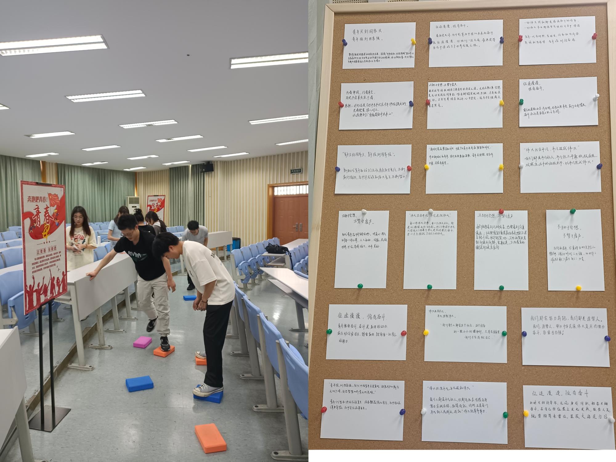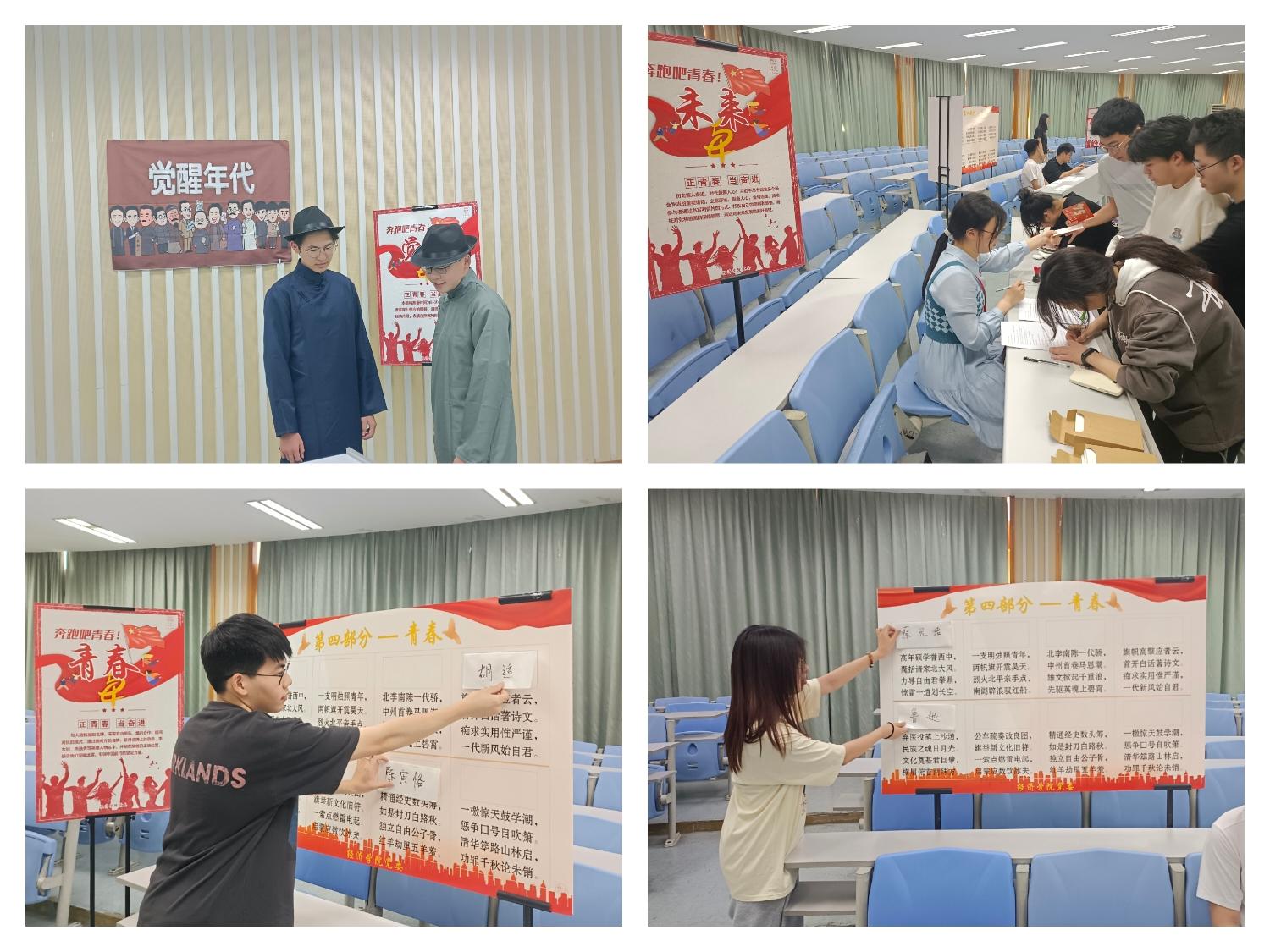 本次活动分为晨曦、觉醒、传承、青春、未来五个板块,形式多样、内容丰富。同学们通过观看宣传片、五四代表人物知识问答等形式,共同追忆激情燃烧的岁月中革命青年坚定的信仰和如火的热情,激扬奋斗之志;通过角色扮演、摸石头过河,在沉浸式体验中感悟五四精神,彰显青春力量;通过书写对习近平总书记名言金句的理解与感悟,同学们表达了永远跟党走的决心和践行初心使命的坚定。