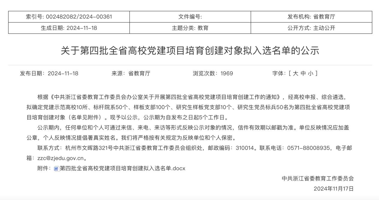近日,中共浙江省委教育工作委员会公布了第四批全省高校党建项目培育创建对象入选名单。a漫