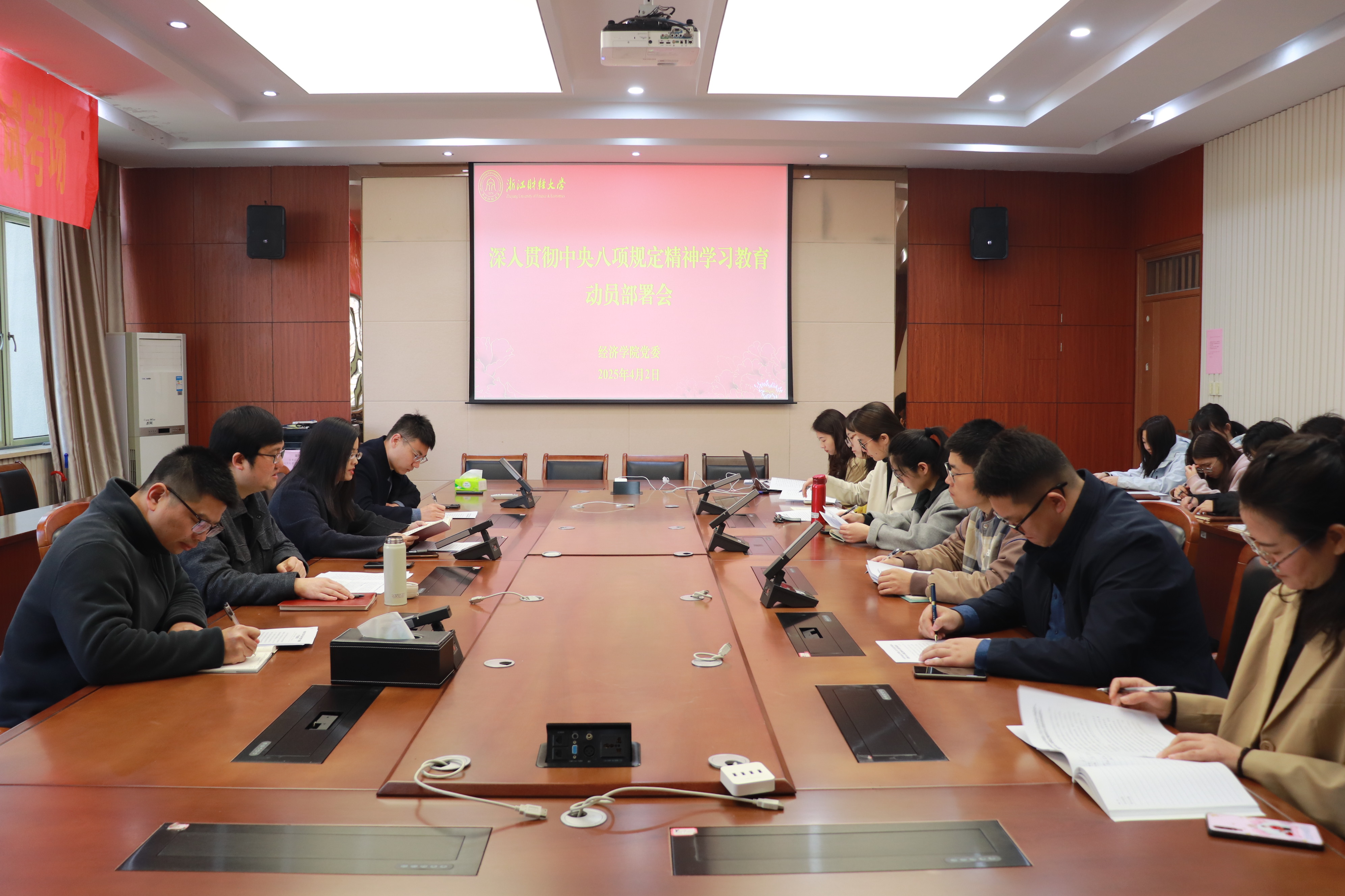 会上,党委副书记徐丽玲传达了中共中央办公厅印发的《关于在全党开展深入贯彻中央八项规定精神学习教育的通知》以及学校深入贯彻中央八项规定精神学习教育动员部署会精神,为学院开展相关学习教育工作明确了方向和要求。她着重指出,深入贯彻中央八项规定精神学习教育,对于学院筑牢廉洁防线、规范办学行为、提升教育质量有着不可忽视的重要性。这不仅是加强党风廉政建设、净化政治生态的必然要求,更是推动学院各项事业稳健前行,营造风清气正育人环境的关键举措。通过此次学习教育,学院能够进一步统一思想,凝聚力量,确保教育工作始终沿着正确的方向发展,为学院的长远发展奠定坚实基础。