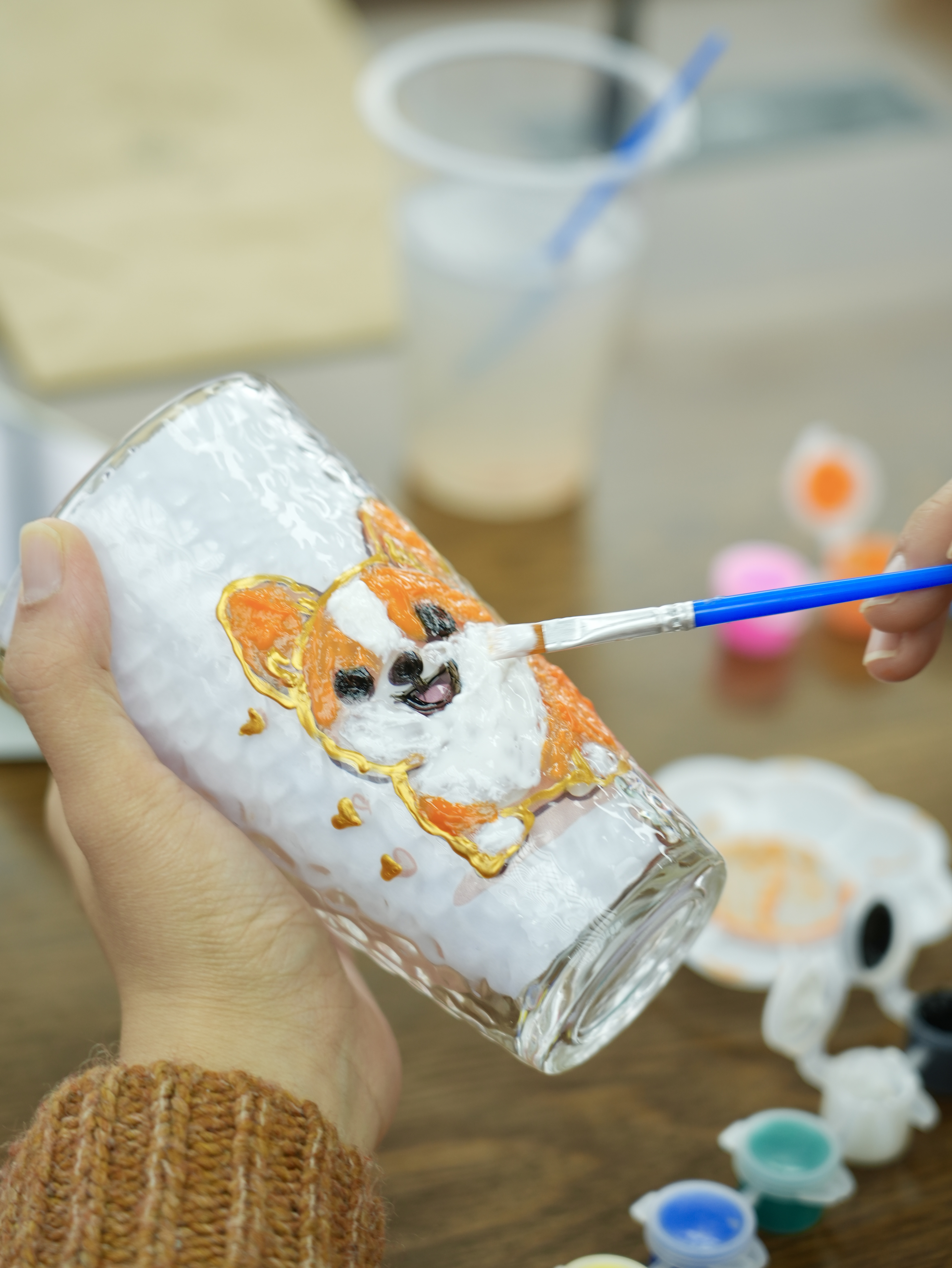 分工会在学术中心308室举办了主题为“约‘绘’浪漫,快乐加‘杯’”的手绘玻璃杯活动。a漫