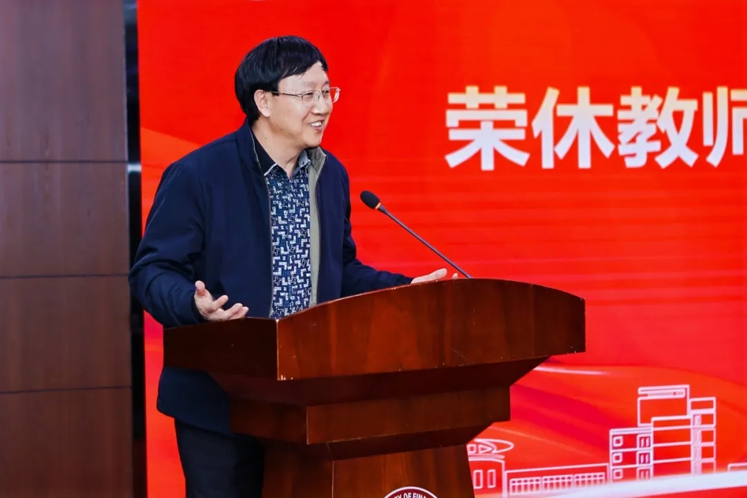 邱风教授代表荣休教职工发言,他的发言饱含对教育事业的热爱,对学校的深厚情谊,以及对未来的美好期许。