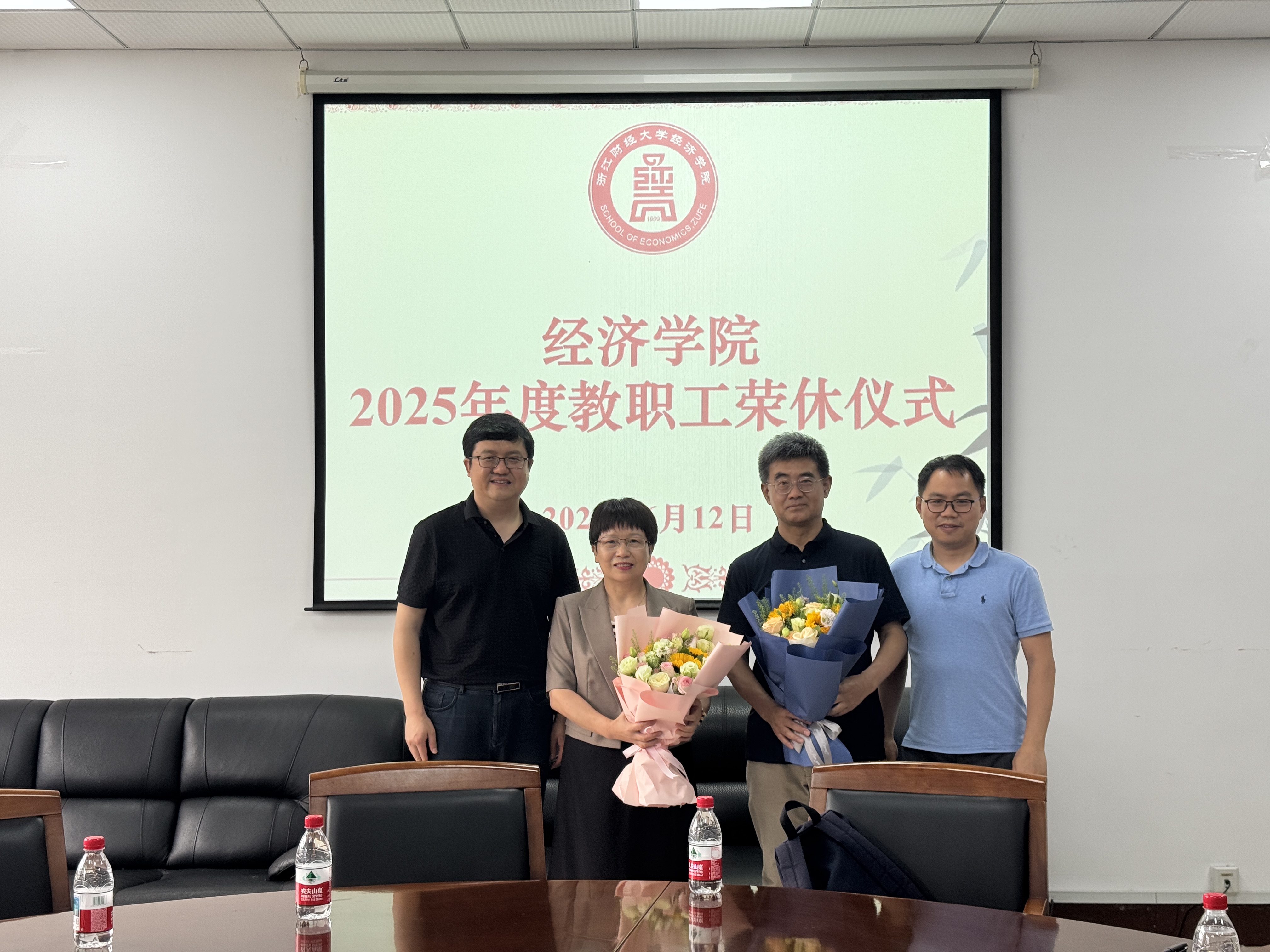 罗俊院长在致辞中,高度赞扬了两位老师在各自岗位上的卓越贡献。他表示,胡亦琴老师作为原学院党委书记、院长,在党建工作与学院管理中展现出卓越的领导才能与责任担当,为学院的发展筑牢了坚实根基;严北战老师在教学与科研领域深耕不辍,以严谨的治学态度和丰富的教学经验,培养了一批又一批优秀的经济学人才。两位老师数十年如一日,将自己的青春与智慧奉献给了教育事业,是学院发展的重要推动者与见证者。