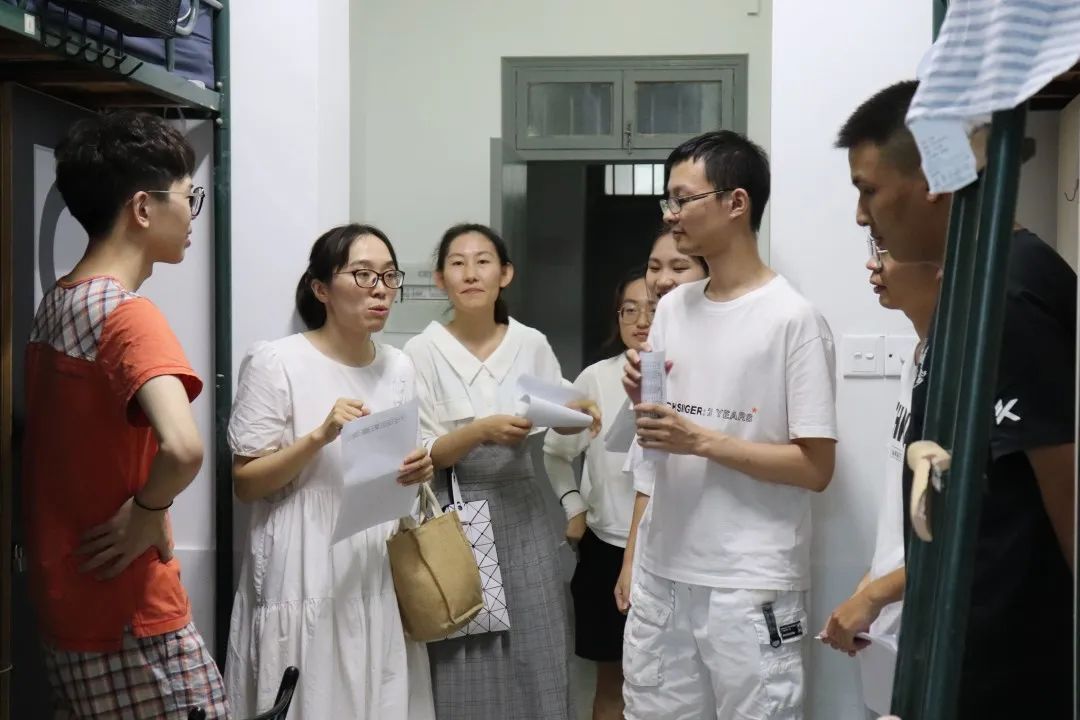 晚上18点30,2022级新生班主任、辅导员与班导们共同走访了新生寝室,并将新生大礼包送到同学们的手中。老师们细心询问了同学们关于开启大学生活的切身感受,了解大家的彷徨与憧憬,并叮嘱同学们好好休息,以更加饱满的热情参与到军训的磨砺中去。
