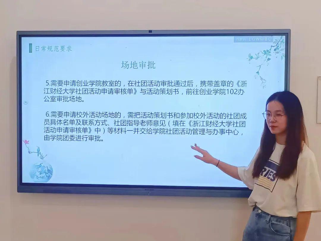 随后,学院社管中心负责人何佳庆围绕活动申请、场地借用、物资审批、经费报销等方面强调了工作要求,希望社团活动有序、规范开展。
