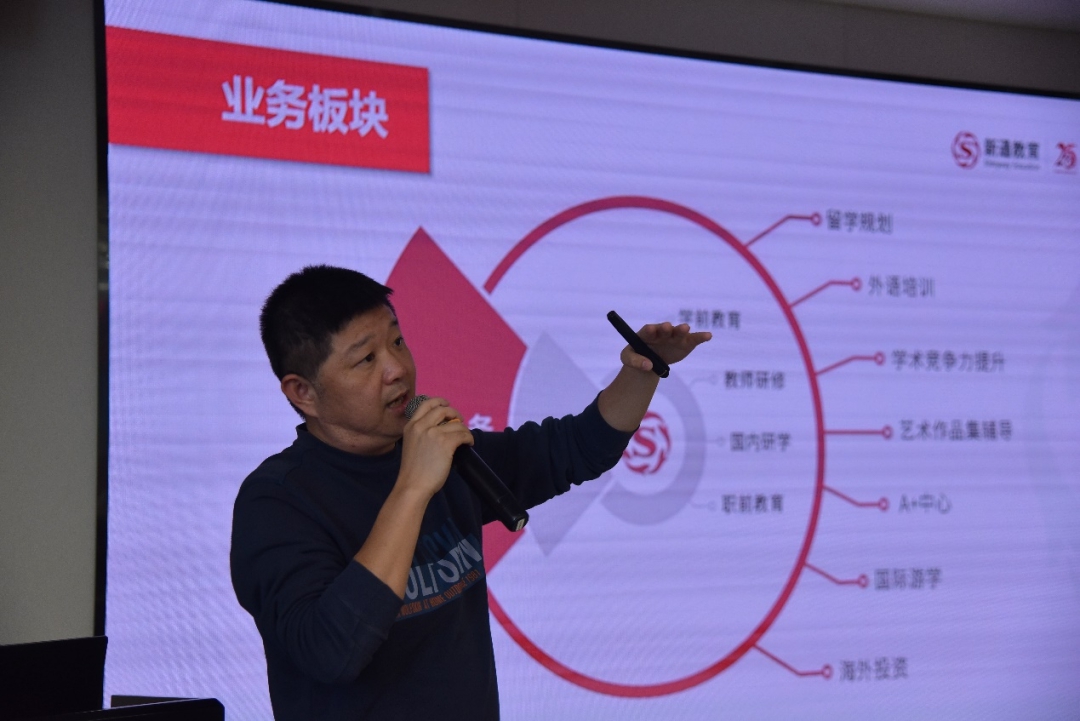 首先,浙财学子来到新通教育集团大厦,新通教育王英、李洋等职员对此表示热烈欢迎。为进一步了解企业及其a漫,新通教育副总裁胡嘉西从企业基本信息、集团使命与价值观、业务板块等方面进一步向大家介绍新通教育。接着,a漫