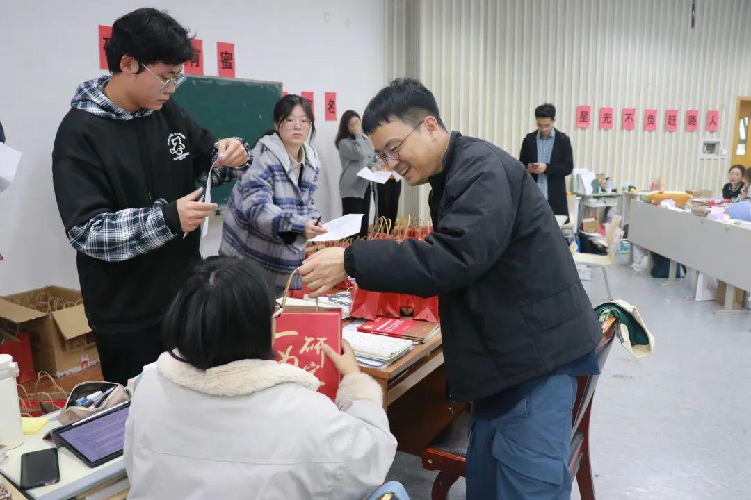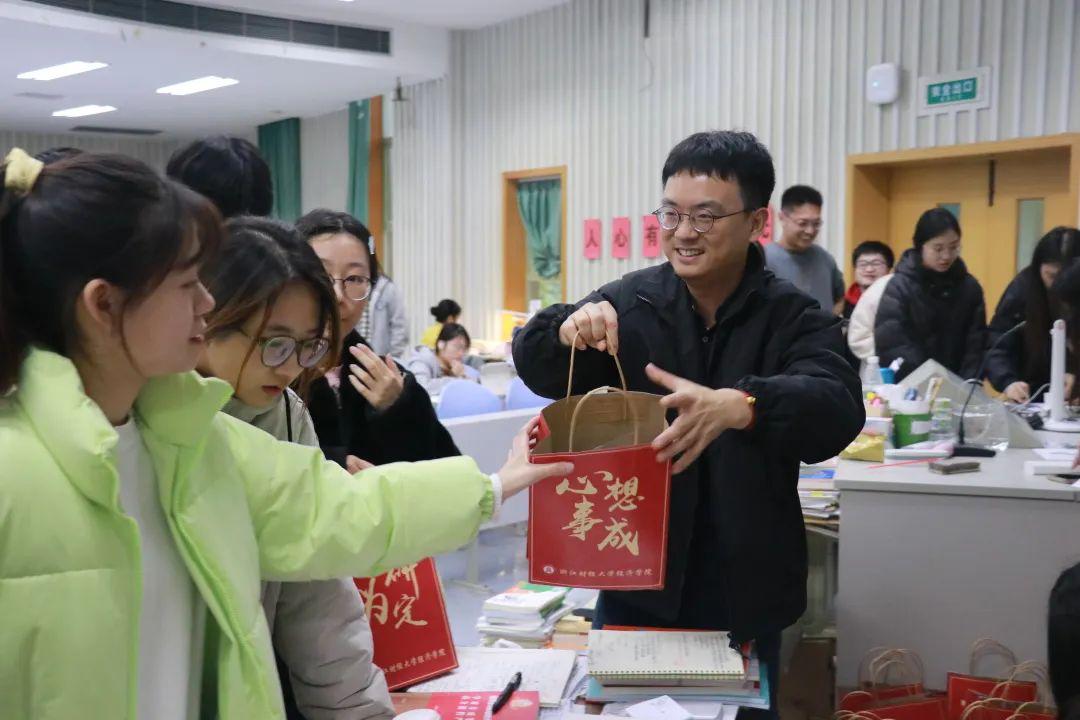 崔泰铭表达了对备考同学的关心问候,他充分肯定了大家勤奋刻苦、持之以恒的备考精神,并嘱咐大家坚定信念,放松心态,劳逸结合。随后,老师们将精心准备的“考研加油包”分发给备考同学。