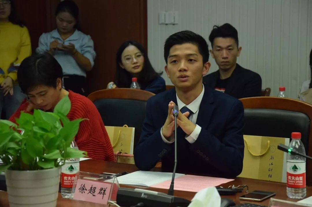 2017届校友徐超群学长(现担任安吉二又土农业发展有限公司总经理)同样从人才培养方面进行了主题发言。学长指出,大学应区别于初中和高中,在大学中,应该更多地学习技能与专业知识。同时学长为学院在创业大赛的对接上有了新的发展而感到欣喜。