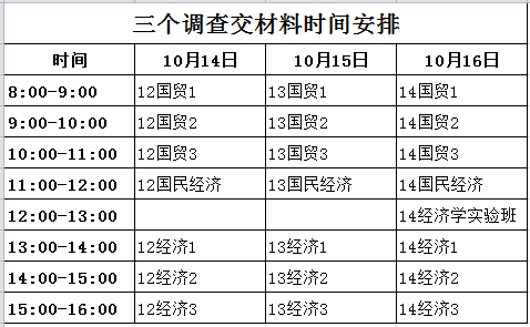 根据学校教学计划安排及经济与国际贸易学院关于在短学期安排实践教学活动(三个调查)的通知精神,2012级、2013级和2014级三个年级的学生已在暑假分别参加了三个调查活动,现将三个调查的成果材料(调查报告)上交的相关工作安排如下: