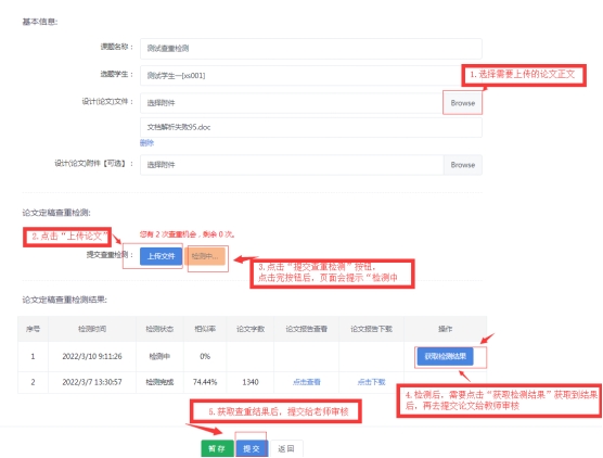 本科生毕业论文检测实施细则》文件精神,为端正学风,加强本科学生毕业论文学术规范管理,学校继续开展毕业论文总相似比检测普查工作。目前毕业论文(设计)管理系统已完成与维普论文检测系统(vpcs)的对接。具体检测流程如下: