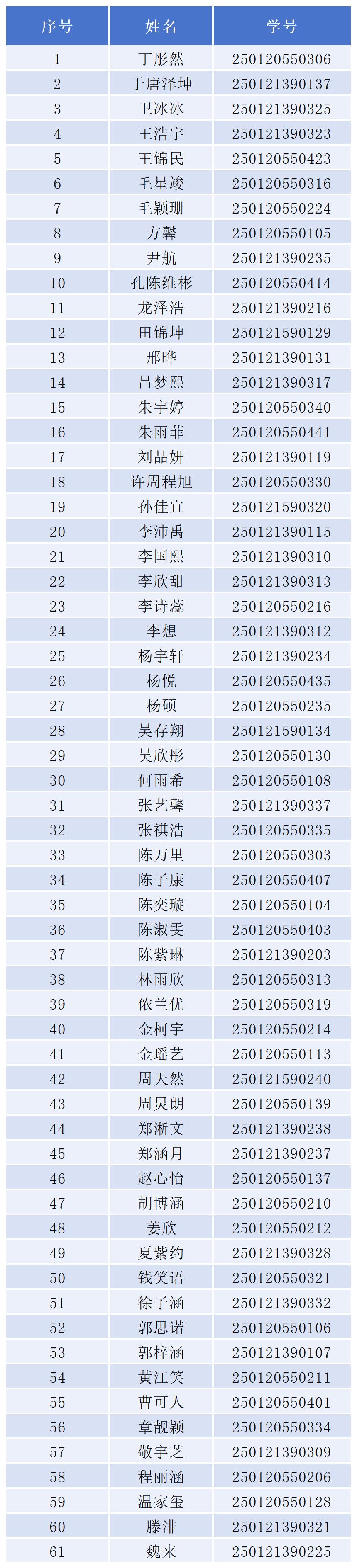 2025年经济学拔尖学生培养基地班新生选拔有效报名94人,按照《关于经济学拔尖学生培养基地班2025级新生选拔的通知》规定,经按入围面试规则筛选、审核并确定,现将入围面试名单公布如下(名单按照姓名笔画排序)。请入围面试考生尽快加入QQ群,并积极做好准备工作。